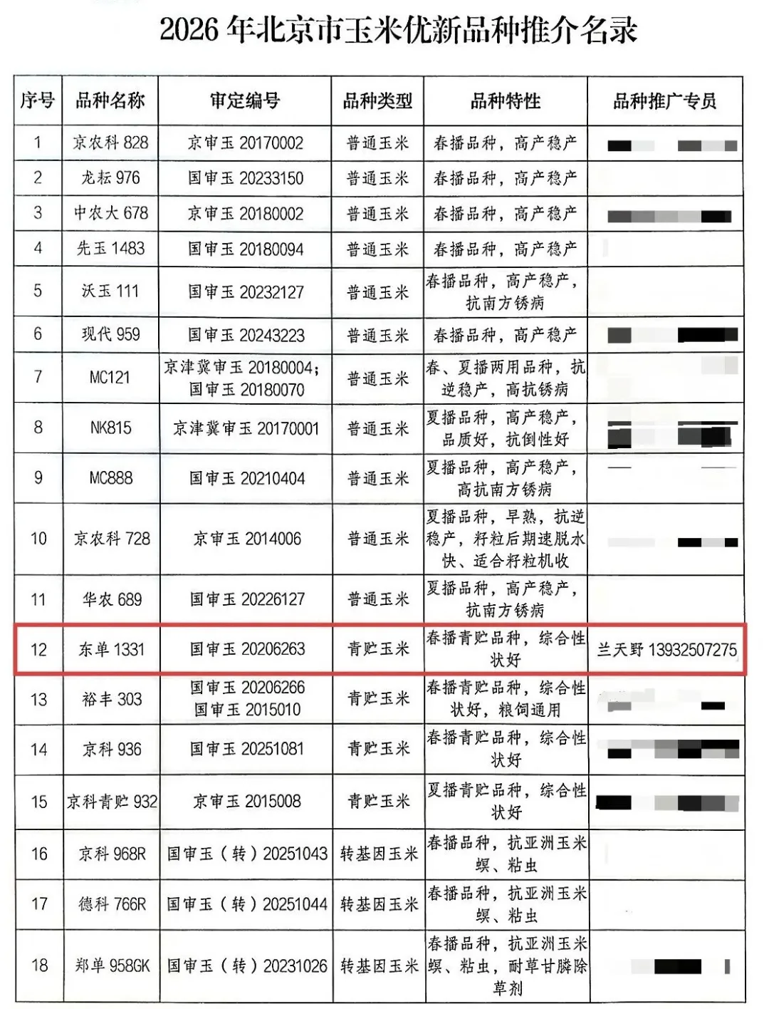 近日,北京市发布了2026年农业主导品种和主推技术通知,辽宁东亚种业自主培育的东单1331入选2026年北京市优新品种推介名录。