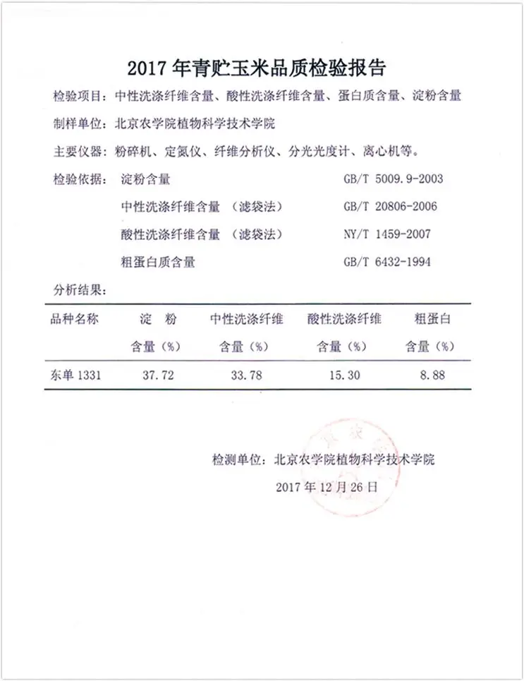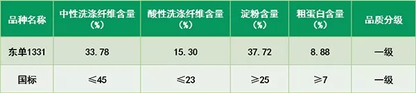东单1331用于青贮产业,粮饲通用品质好,淀粉含量高达37.72,纤维、粗蛋白等含量合理。全株青贮,有65%的营养来自于籽粒,10%来自于细胞内含物,25%来自于消化纤维。青贮果穗一样大,既能收草,也能收籽粒,是粮饲通用的大品种。
