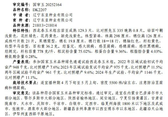 • DK2207--国审玉20252164