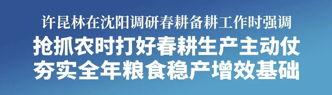 许昆林在调研中指出,抓好春耕备耕,对于确保粮食丰产和粮食安全至关重要。作为全国粮食主产省之一,全省各地各相关部门要始终胸怀“国之大者”,严格落实粮食安全党政同责,深入实施藏粮于地、藏粮于技战略,在良田良种良机良法深度融合上下功夫,不断提升农业综合生产能力和质量效益。要稳定粮食播种面积,深入实施新一轮粮食产能提升行动,持续推进高标准农田建设,分类实施黑土地保护工程,大力推广优良品种,落实关键增产技术措施,努力提高粮食单产和品质。要精准对接需求、主动靠前服务,全力做好农资储备调运供应,强化质量监管,确保量足价稳质优,提高农机作业与社会化服务水平,组织农技人员到户到田,精准指导培训,帮助农民提高春耕生产质量和效率。要落实好强农惠农富农政策,确保惠农补贴精准发放、直达快享,强化价格、补贴、保险等政策支持和协同,健全种粮农民收益保障机制,充分调动农民群众种粮积极性。